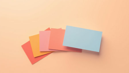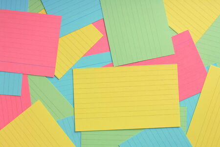 Several lined note or prompt cards in various colors