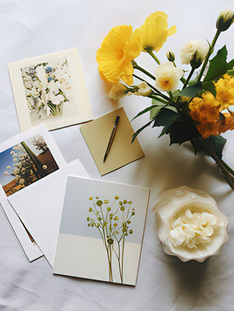 Beautifully designed greeting cards displayed on a wooden table in a cozy setting