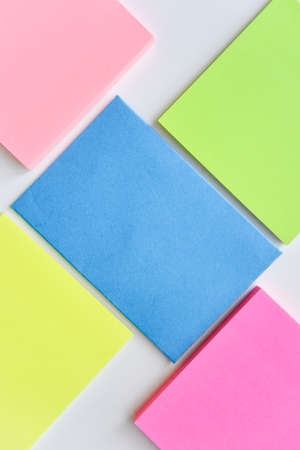 Colorful sticky note on pastel color background with copy space.
