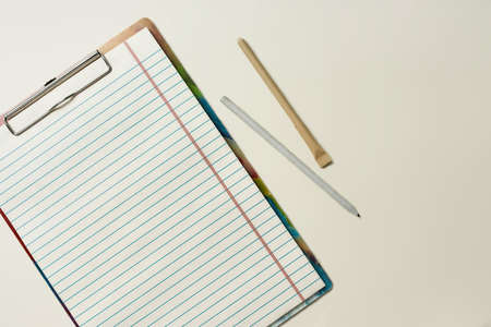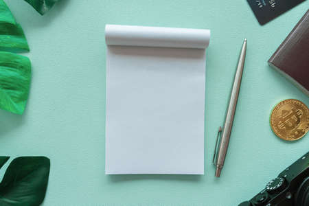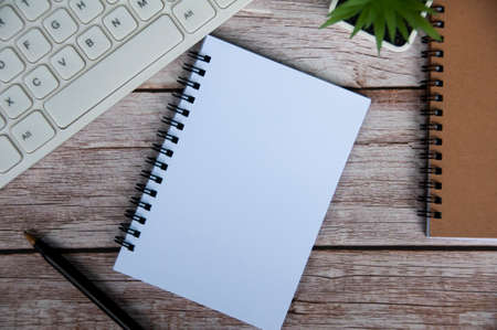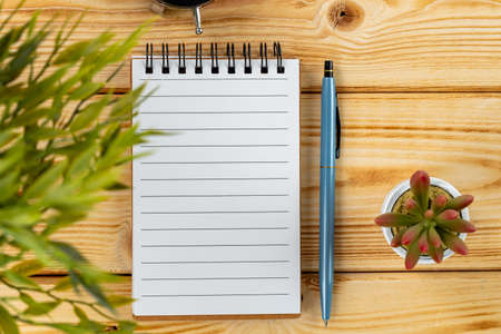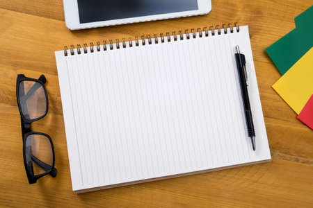Blank notepad for office or school to write the goals of the task plans. Flat lay top business education concept. Copy space