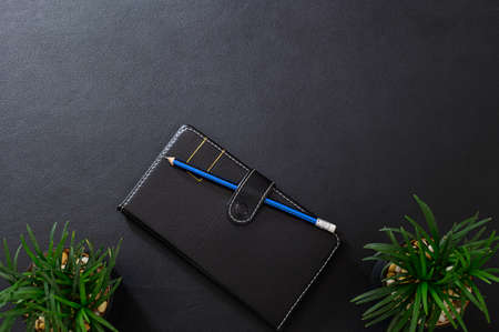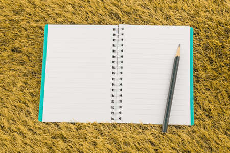 top view of blank notebook with pencil
