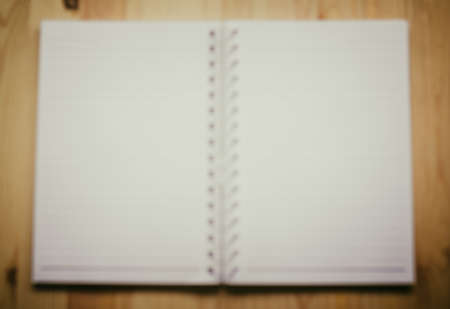 Blurred picture of note book paper on wooden background: vintage tone filter
