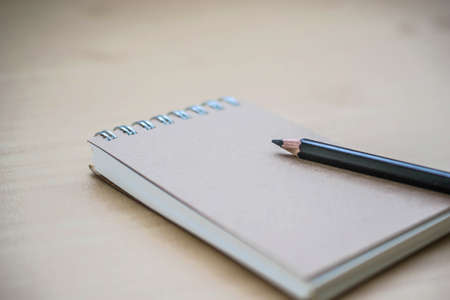 Notepad with pen on wood board background. Education or business photo. Take note of the product for book with paper and concept or copy space.