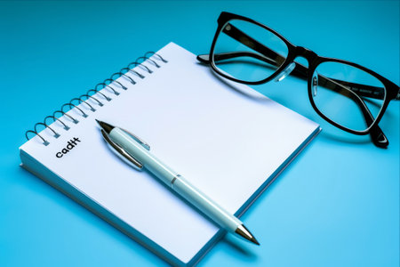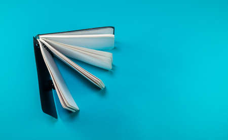 an isolated view of a white note book in blue background