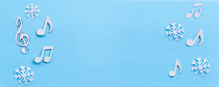 3d illustration of musical notes and musical signs of abstract music sheet.Songs and melody concept.Music background design.Musical writing and Christmas carol