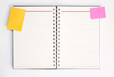 Notepad for notes is open on a blank page. Stationery, note paper.