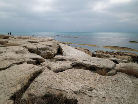 Rocky coast of the Caspian Sea. Mardakan. Azerbaijan.