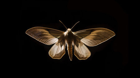 A close up of a moth on a black background. AI generative.