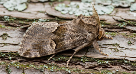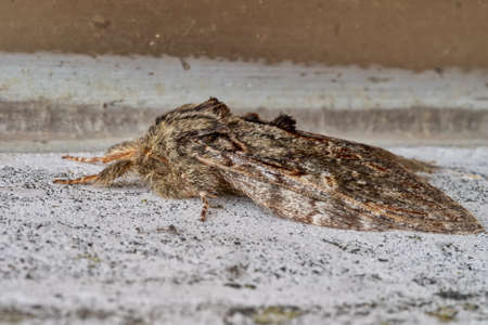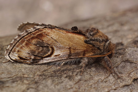 Natural closeup on the pebble prominent moth,Notodonta ziczac, sitting on wood