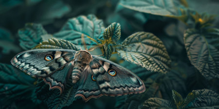 Majestic Moth Resting on Lush Green Foliage in Natural Habitat.