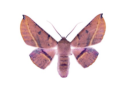 Pink Bellied Moth, Oenochroma vinaria, Australian moth, isolated on white, wingspan 42mm