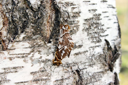 Night moth on a birch trunk