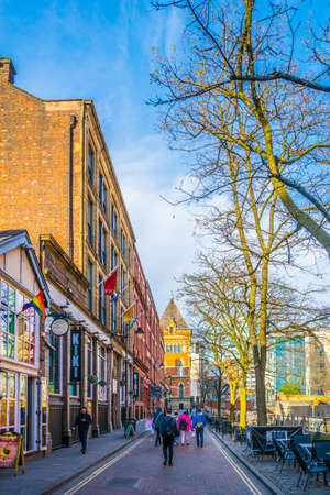 MANCHESTER, UNITED KINGDOM, APRIL 11, 2017: View of the Gay village alongside Canal street in Manchester, England
