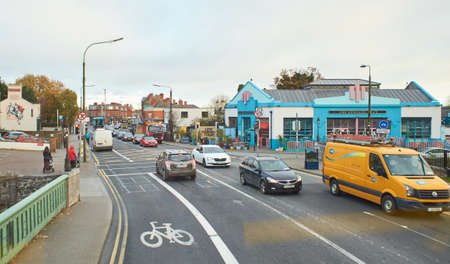 Dublin, Ireland - 11.19.2021: Dublin's streets with cars, pedestrians and cyclists.