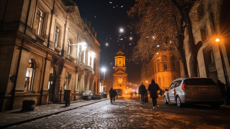 Generative AI View of empty Eustace Street in the city center of Dublin, Ireland with no people