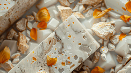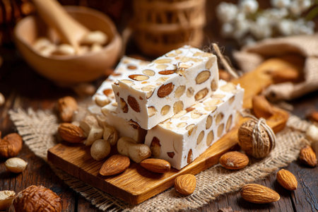 Sweet honey nougat with almonds stacked elegantly for a delightful treat