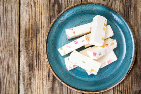Christmas nougat on wooden background