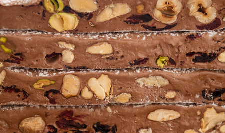 close-up shot of the classic nougat with hazelnut almonds