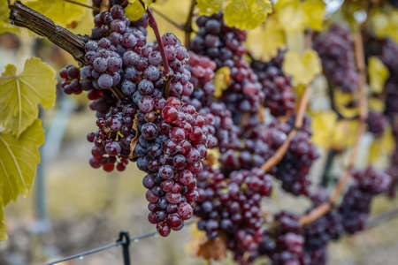 Red Wine grapes ready for harvest Region Moselle River Winningen Germany