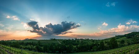 Colorful sunset in the vineyards of Rosazzo, Udine, Friuli Venezia-Giulia