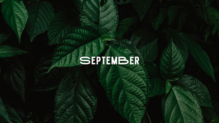 September alphabet letter with maple leaves frame on wooden background