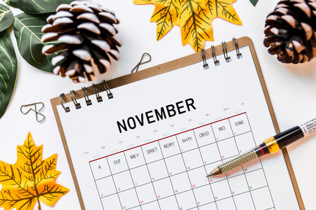 A calendar with the word November written on it.
