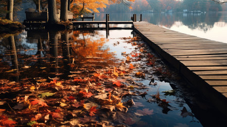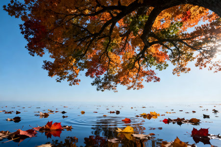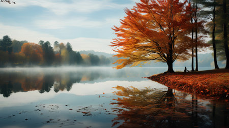 Tranquil lake reflecting the vibrant colors of autumn foliage, creating a picturesque scene of nature's beauty