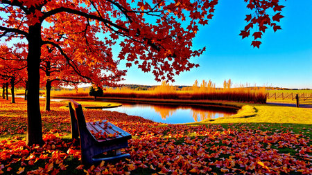 AI Generated. serene autumn landscape with colorful leaves and a peaceful river
