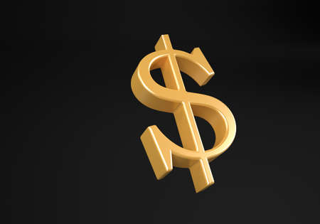 Golden dollar sign. US dollar currency symbol isolated on gray background. 3D render.