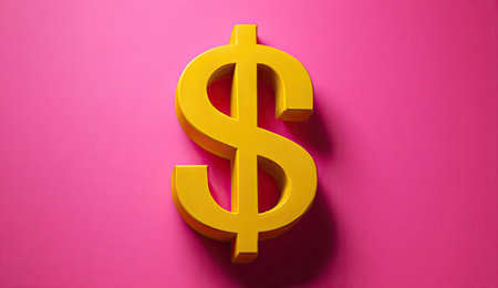 A vibrant yellow dollar sign stands out against a bright pink background. The image showcases a three-dimensional symbol with smooth textures and dramatic lighting. This composition, employing a minimalist aesthetic, is suitable for conveying themes of finance, investment, and economic concepts. It has potential uses in various commercial and editorial contexts.