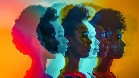 Profile view of diverse individuals against colorful backgrounds, showcasing diversity.