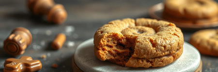 Delicious homemade cookies on a wooden table with chocolate and baking tools in a cozy kitchen setting