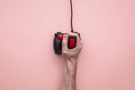 Saint-Petersburg-18 August, 2020: Joystick for game console on black background. Game console with a joystick. Home video game console.