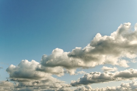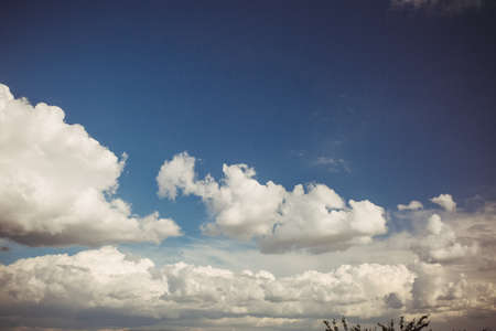 blue sky and fluffy white clouds, a cloudy day in Ukraine, photo tinted colors
