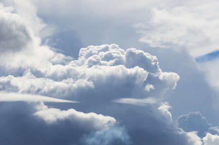 Beautiful white cumulonimbus clouds against the background of the bright blue sky
