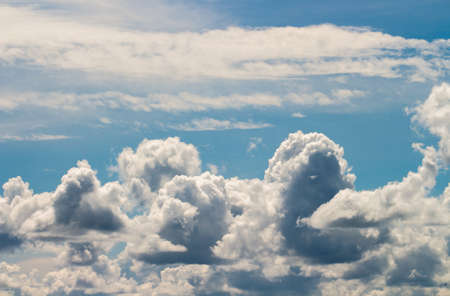 Beautiful white fluffy clouds with blue sky background, nature weather.