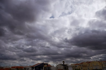 Storm clouds in the sky over the city of Santa Cruz, Portugal.