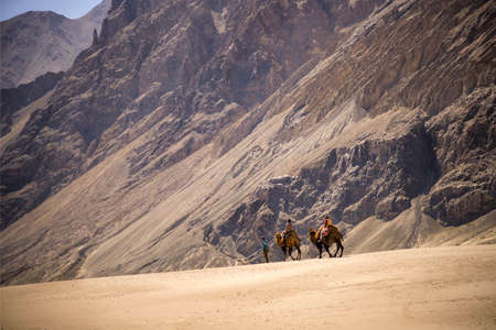 Camel safari in Nubra Valley, Ladakh, India