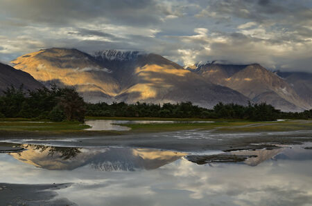 snow mountain range and reflection Leh Ldakh ,India - September 2014