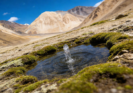 Fountain in Pangong Lake, Ladakh, India.