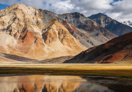 Mountain scenery at sunny day in Ladakh, India. Ladakh is a mountainous region in northwest India and in the area known as the Trans-Himalaya.