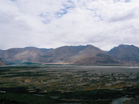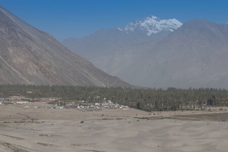 View of the Nubra Valley, Ladakh, India. Snowy mountains in the backgrounds