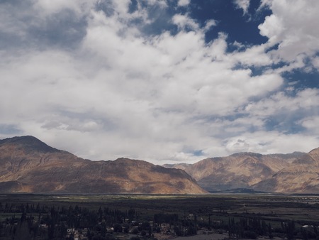 beautiful mountain landscape and blue sky with clouds in Indian Himalayas, Ladakh region