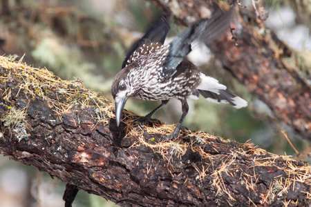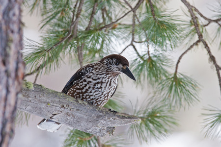 Spotted nutcracker, Eurasian nutcracker, or just nutcracker, (Nucifraga caryocatactes)