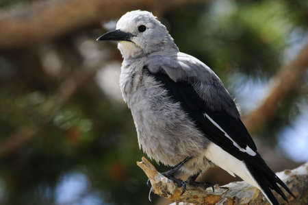Clark's Nutcracker (Nucifraga columbiana) perched on fir tree branch. Banff National Park, Alberta, Canada.
