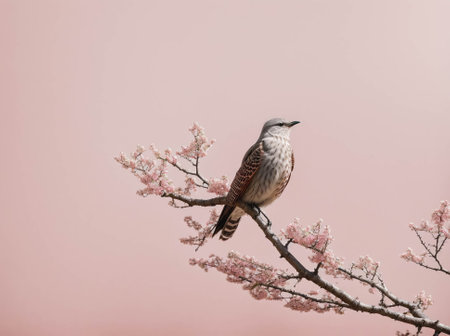 A bird is perched on a branch of a cherry tree