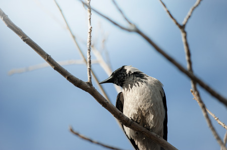 The crow on a tree branch closeup