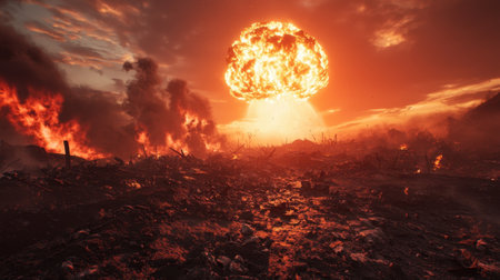 Dramatic Mushroom Cloud Rising Against the Sky, Symbolizing Destruction and Chaos of War Events