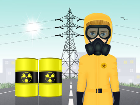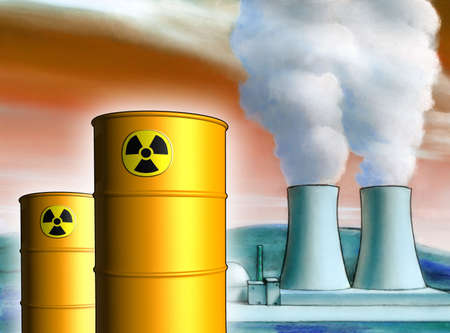 Radioactive waste from a nuclear power plant. Mixed media illustration.