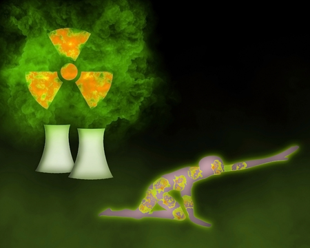 Radioactive cloud coming from nuclear reactor and contaminated person dying of radiation